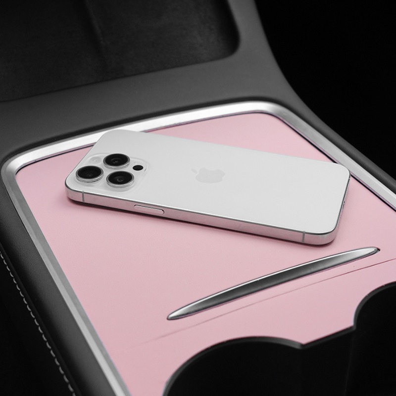 1-Set Compatible for Tesla Model 3\Y Pink Center Console Leather Wrap Kit - Adhesive-Fixation Scratch-Resistant Cover, Dashboard for 2021-2023\u002F2021-2024 Models (Easy Installation)