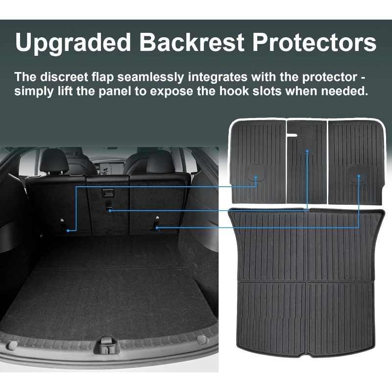 9pcs Model Y Floor Mats 2021-2024 | Fit All-Weather TPE Material Full Coverage with Back Protector, Cargo, Trunk Interior Accessories