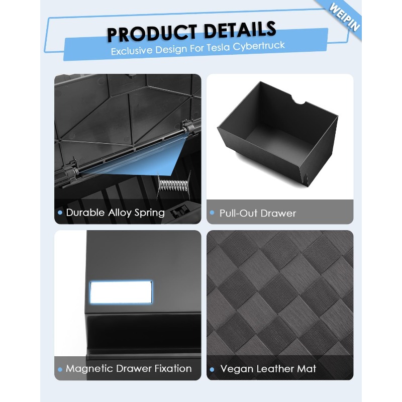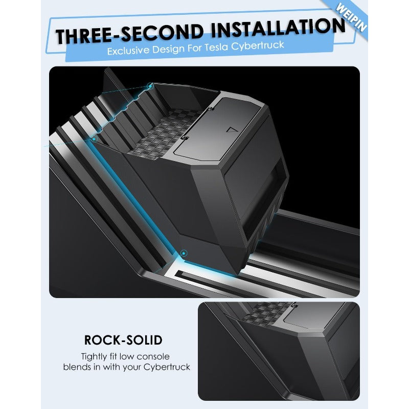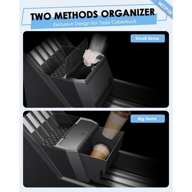 Compatible for Tesla Cybertruck Floor Console Organizer - Push-to-Open 2-in-1 Car Trash Can & Storage Drawer with Vegan Leather Waterproof Compatible for tesla cybertruck 2024-2025, Easy Install, ic Lock, Non-Slip Mats, Interior Accessory