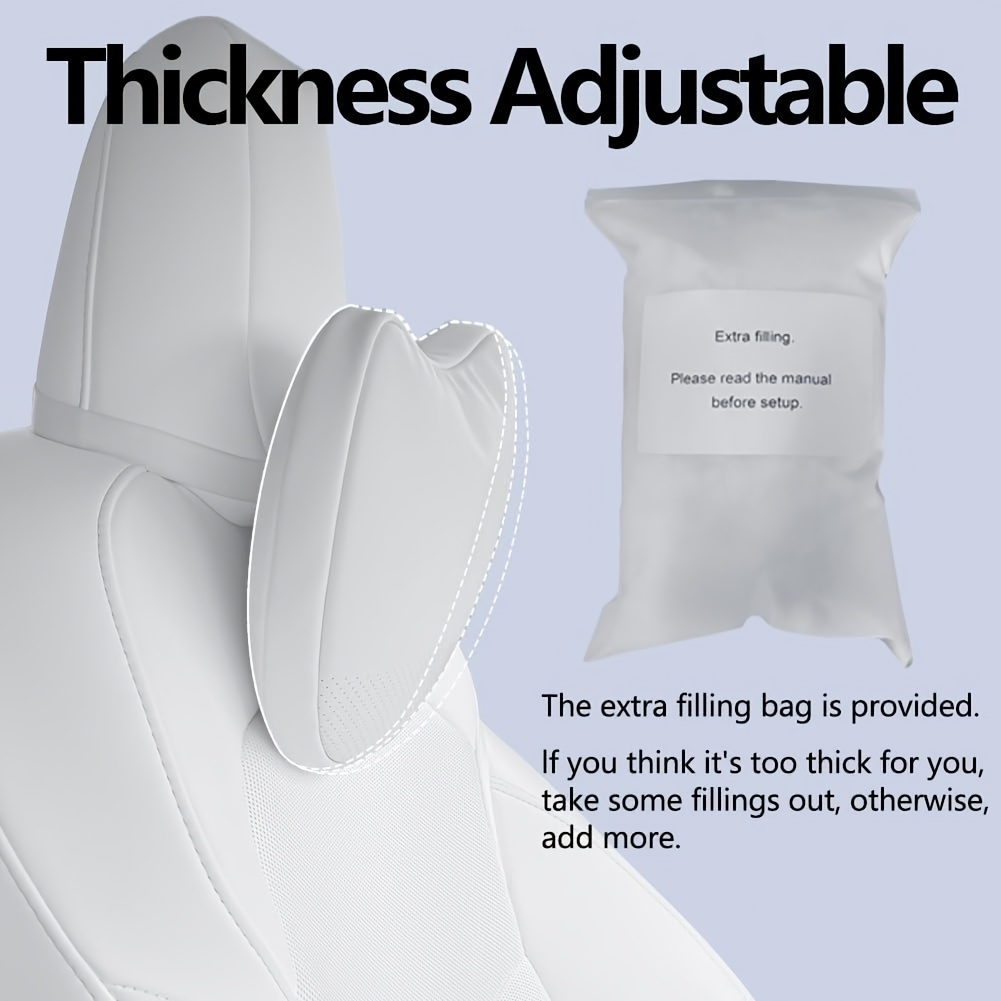 Upgraded Car Headrest Pillow 2 Packs Genuine Nappa Leather Car Neck Pillow for Tesla for Model Y for Model 3 for Model X for Model S Universal Fit Neck Support Cushion White, Driving Comfort, Long Drive Accessory, Premium Look, Sleek Design